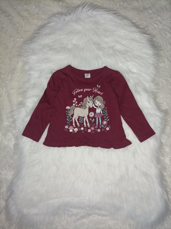 Яркий реглан с рисунком который сверкает По низу кофточки рюшки Цвет бордовый Размер 92: рукав 33, плечи 27, грудь 30, длина 36 116: рукав 40, плечи 29, грудь 32, длина 44 Фирма kiki&koko Купленный в Германии