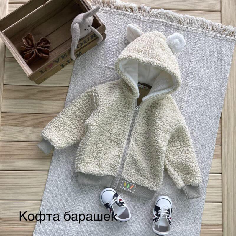 Вона неймовірна! Кофта з “баранця”! На змійці, манжети – трикотажні! В капюшоні – хутро – травка! Вушка – відмінно тримають форму! Розміри: 92р – рукав 27, довжина 34 98р – 30/37см 104р – 32/40см 110р – 33/41см 116р – 37/45см Ціна: 450 грн