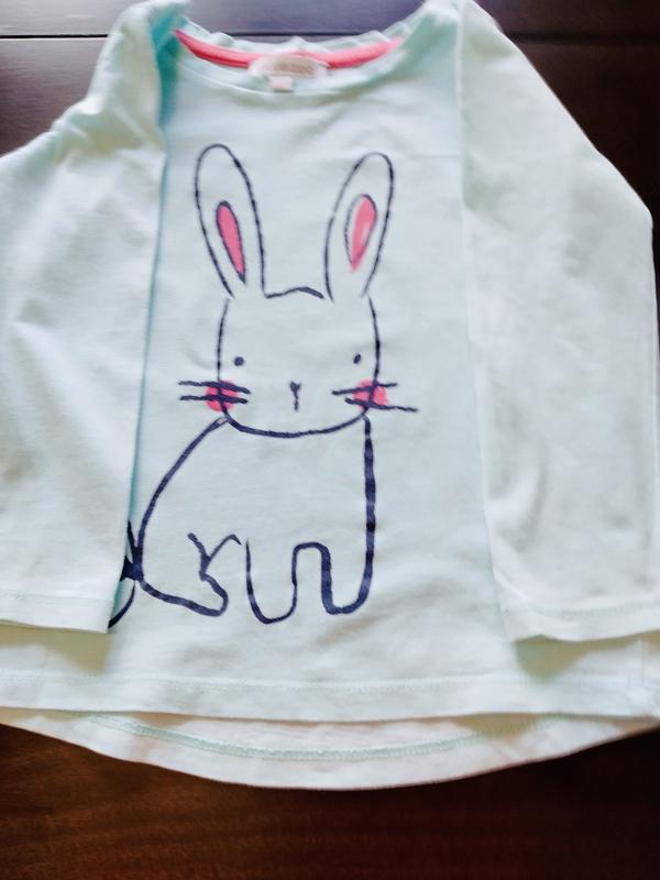 Базова блакитна кофтинка з зайкою, для дівчинки 2-3 рочків, подовжена спинка.