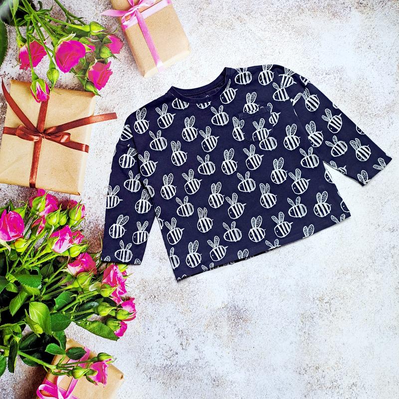 Реглан в бджілки від Next на 5-6 років ,йде вільний,оверсайз . Шир 41,довж 43 ,рукав від горла 46