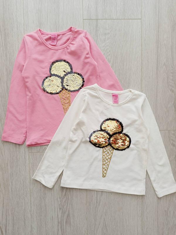 Реглан "Морозиво" пайєтки перевертаються, змінюють колір Туреччина кольори: білий, рожевий розміри 1-2 роки Заміри: довжина рукава від шва плеча-34 см, ширина під ручками-26,5 см, довжина від шва плеча- 36 см