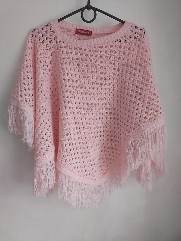 Дитяча тепла рожева накидка. Ширина верхнього вирізу 26 см , довжина виробу 50 см на вуглах та 40 з боків. У ширшому стані. За додатковими фото чи питаннями звертайтеся в особисті повідомлення.