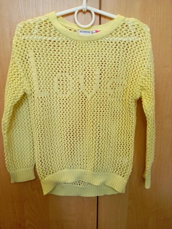 Кофтина на дівчинку, ніжно - жовтого кольору, вʼязана, з бантиком на спинці, дуже гарно виглядає. Розмір 116