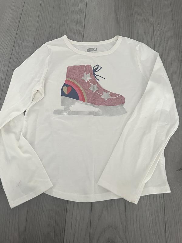 Реглан білого кольору , в майже ідеальному стані, є лише нюанс на рукаві, фото додаю. По спині 38 см, довжина рукава 43