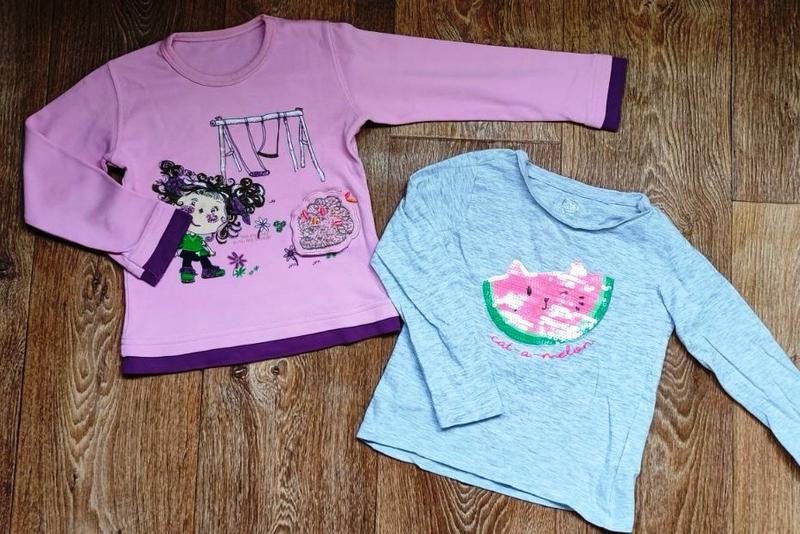 Ціна вказана за обидві, поштучно 100 грн за 1 фут. Рожева р.110 ТМ Unruly (Туреччина), 100% бавовна, стан гарний, є малопомітний слід від ручки на рукаві, довжина від плеча 37,5 см, ширина під ручками 28,5 см, плечі 26 см, рукав від плеча 37 см. Сіра р.116 ТМ Cool club, 98% бавовна та 2% віскоза, стан дуже гарний, без дефектів, довжина від плеча 36,5 см, ширина під ручками 29 см, плечі 25 см, рукав від плеча 37 см. Пересилаю.