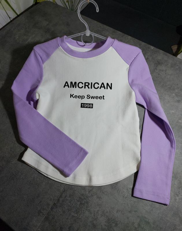 Крутий лонгслів для маленьких модниць🥰. Розміри: 134. Натуральна тканина дуже гарної якості, приємна на дотик. Фасон приталений, трохи укорочений. Дуже гарно виглядає з джинсами будь-якого крою❤ 134: довжина - 44см ширина - 34см рукав(від плеча) - 46см рукав(вн.шов) - 34см рукав+плече(від горловини) - 55см