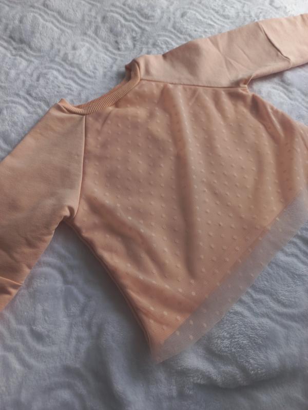 Чудовий топ, з рукавом, в ніжно персиковому кольорі🍑 Розміри - 92. Зріст - 87 - 92см. Заміри: -довжина топу - 30см +3см фатин. -рукав - 33см.
