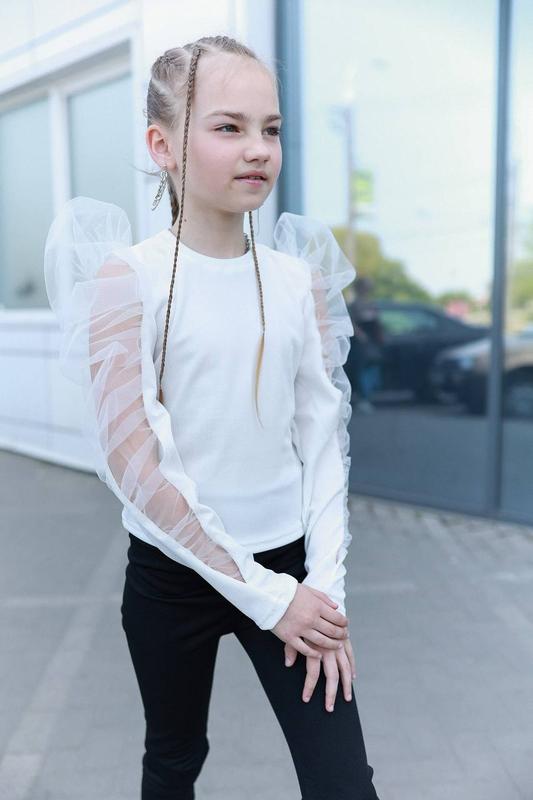 Кофта біла⬆️⬆️⬆️ Тканина мустанг мілкий рубчик , стрейчева Турецька , рукав -вставка з евросети. Якість тканини і пошиття високе Розміри 140,146,152,158 140-плечі 28, рукав 51, довж 41; 146- плечі 29, рукав 54, довж 45; 152- плечі 30, рукав 57, довж 47; 158- плечі 31, рукав 59, довж 49.