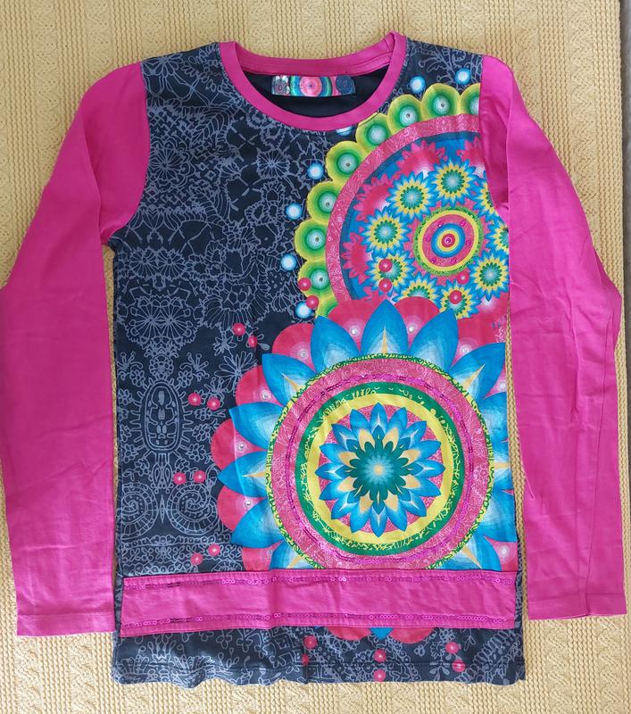 Кофта, лонгслів дитячий Desigual. Рожевий з узорами, в дуже хорошому стані. На 11-12 років, 36 см по бюсту, 52 см рукав