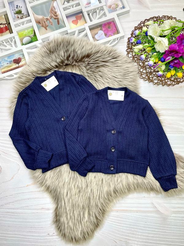 Стильний кардиган для красунь 💗 тканина трикотаж косичка, м'яка і дуже приємна до тіла, застібається на гудзики Заміри: довжина/пог/рукав від горловини 128 - 43/36/51 - 134 - 45/37/56 140 - 46/38/58 - 146 - 49/41/63 - sanya