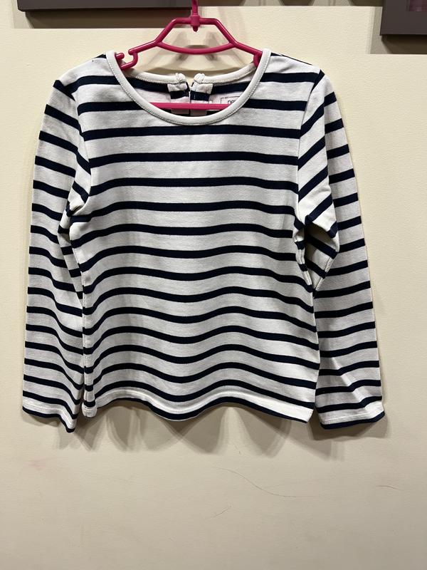 Кофточка в темно-синюю полоску в идеальном состоянии, на 5-6 лет, на рост 116см. Замеры: длина 41см., ширина под руками 33см., рукав 44см., плечо 5см.
