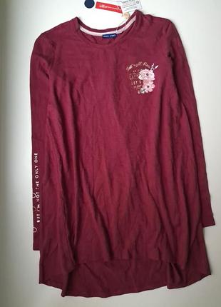 Реглан туніка лонгслів подовженний бордового кольору з принтом , дуже гарно під лосіни, склад: бавовна. Заміри: довжина 66, сзаду 78, плечах 37, грудях 47, рукав 64 см