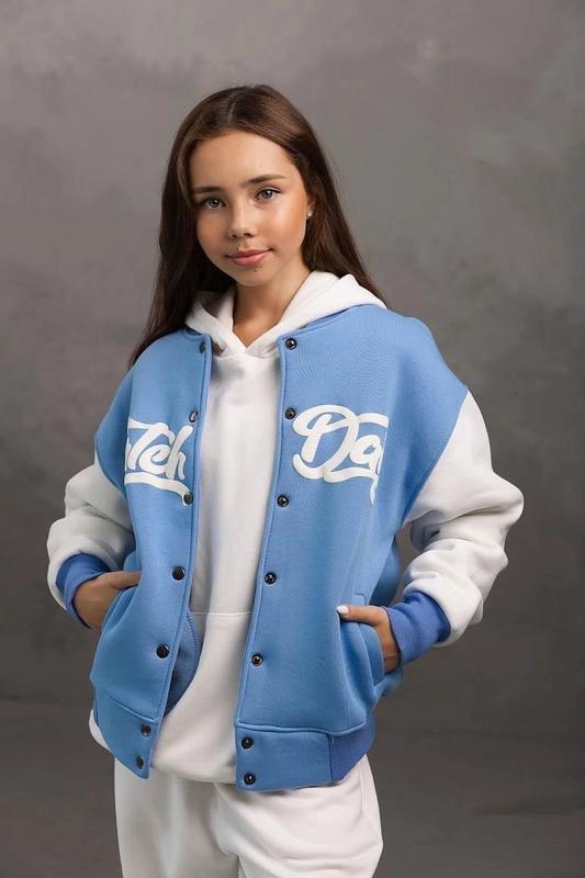 Стильний бомбер для дівчаток Застібається на кнопки. Є кишені. Тканина - турецька тринитка на флісі. Якість відмінна! РЕКОМЕНДУЮ! Розміри повномірні -оверсайз Заміри: 134 - довжина - 54см, ПОГ - 45см, рукав від горловини - 62см. 140 - довжина - 55см, ПОГ - 45см, рукав від горловини - 64см. 146 - довжина - 55см, ПОГ - 46см, рукав від горловини - 64см. 152 - довжина - 58см, ПОГ - 48см, рукав від горловини - 69см. 158 - довжина - 62см, ПОГ - 51см, рукав від горловини - 71см. 164 - довжина - 62см, ПОГ - 51см, рукав від горловини - 74см. Розміри в наявності: 134-3шт бронь 1 шт 140-2шт 146-3шт 152-1шт 158-2шт Арт Мод
