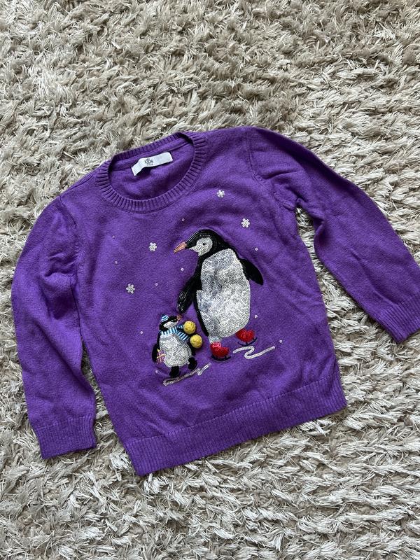 Кофточка состояние новой. На маленьком пингвинчике есть кнопка, играет новогодняя мелодия. На 3-4 года, замеры на фото
