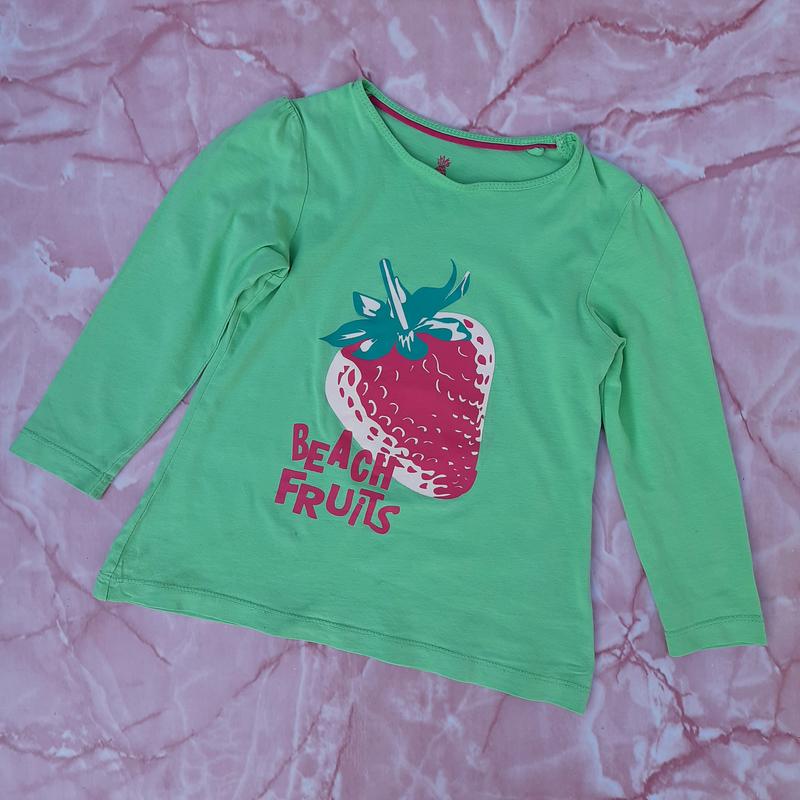Розмір по бірці 98/104. Тканина 100 % котон. Заміри: довжина від плеча до низу - 41 см; півохват грудей - 31 см; довжина рукава від плечового шва - 34 см.