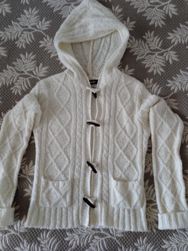 Кофта в'язана на гудзиках з капішоним. Для дівчинки 10-12років.