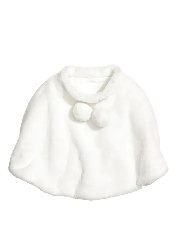 Святкове біле хутряне приємне на дотик пончо на зав'язках ТМ H&M. Розмір на бірці: 92-104 ( вік 2 - 4 роки ) Сток, виріб без паперової бирки. Склад: верх: штучне хутро / підкладка: 100% бавовна.