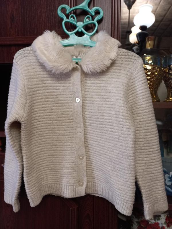 Кофточка на девочку. Размер 3-5 лет, смотря какой ребёнок. Замеры: плечо 7 см, рукав 35 см, ширина плечей 27 см, подмышки 31,5 см, длина от воротника 36 см. Состояние идеальное, дефектов нет, затяжек нет, дыр нет, незакашлатена. Цвет насыщен, незастирана, пуговки все на месте. Товар отправляю Новой почтой и Укрпочтой.