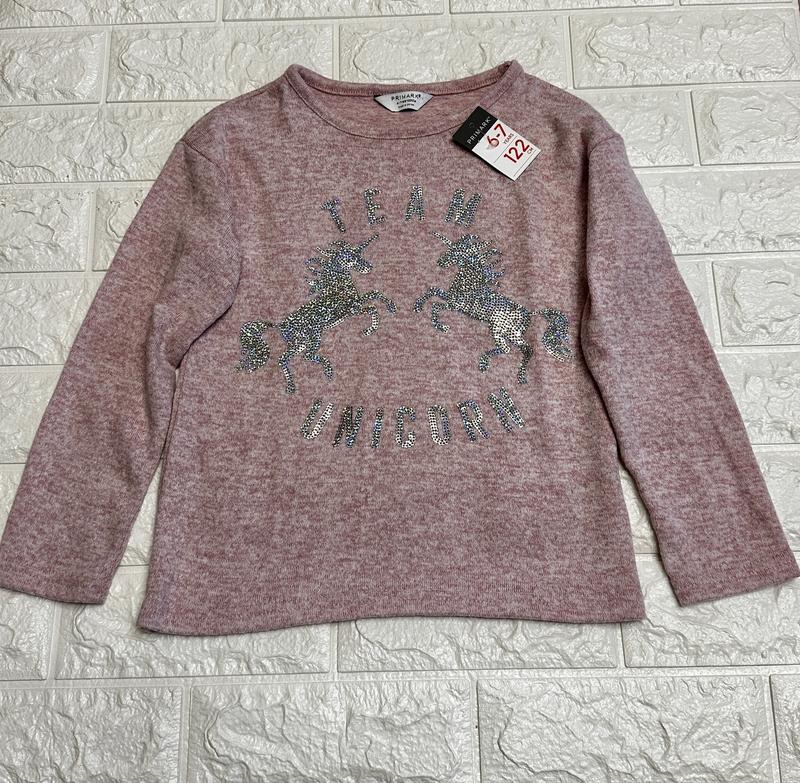 Кофточка на 6-7 лет(122 см), но можно на меньше (оверсайз),плечи спущенные,под леггинсы или джинсы-быт супер Замеры: Длина кофточки-44,5 см Рукав от горла-49 Полуобхват 35