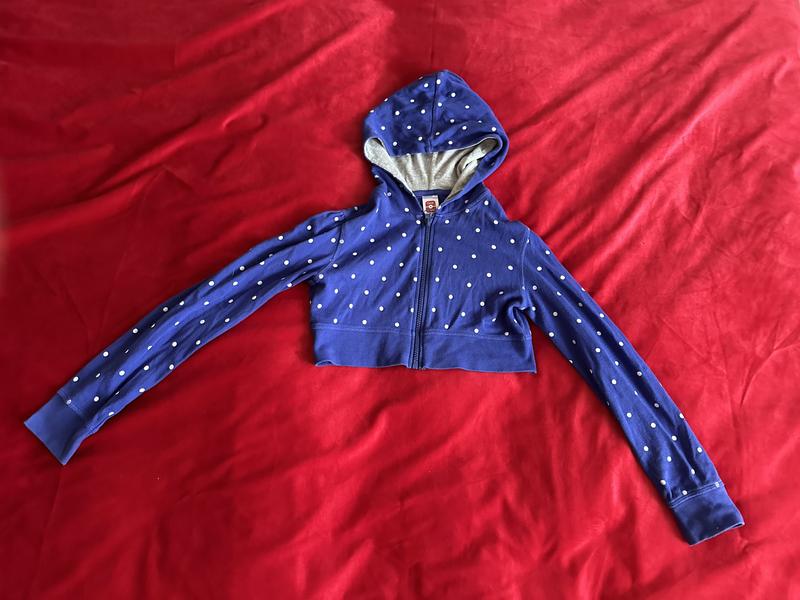 Заступник на блискавку/ Є капішон. Тягнеся,щільність середня/ Підійде на 8-10 років оріентуйтесь по замірах/ Довжина 30 см/ Плечі 36 см/ Знизу 34,5 см/ Рукав 51 см/ Продається як є без повернення/