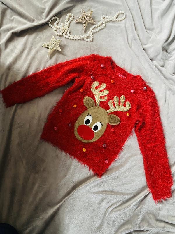 Класнюча новорічна кофта F&F. Стан ідеальний. Розмір 122 (6-7 років), але найкраще орієнтуватись на заміри. Довжина по спинці 45 см. ПОГ 34 см. Довжина рукава 44 см. Дод. фото та заміри на вимогу.
