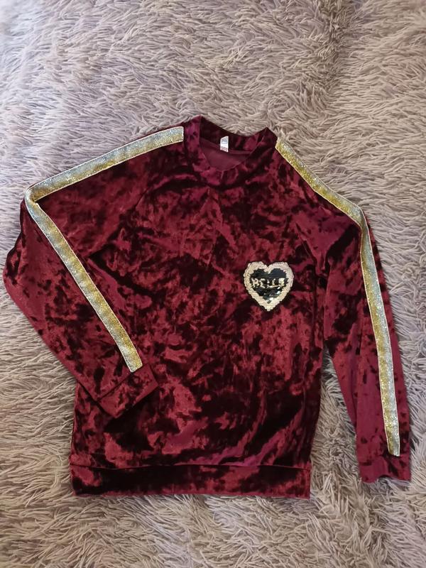 Велюрова кофта для дівчинки вільна посадка має блискучі вставки на рукавах заміри: пот - 40см довжина - 53см