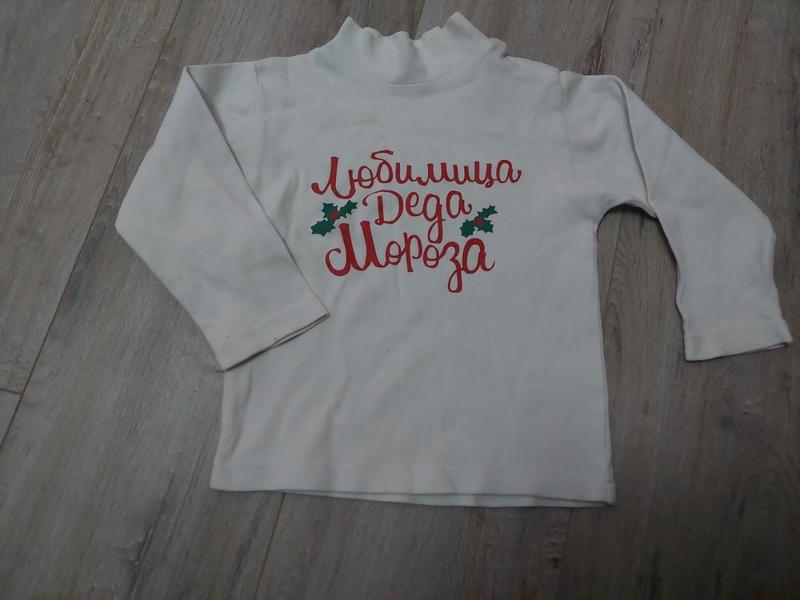 Продам новорічну кофтинку на дівчинку з надписом " Любимица Деда Мороза". На плечі має 2 кнопки. Тканина 100% бавовна На зріст 92см плечі 26см рукав 29см довжина 35см пог 29см