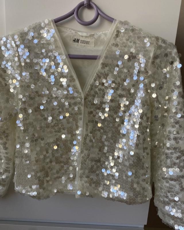 H&M легенька накидка блуза Нарядна ,але підійде і під плаття і під джинси . Купували у Японії в бутику H&M 6-8 Довжина 42 Рукав 45
