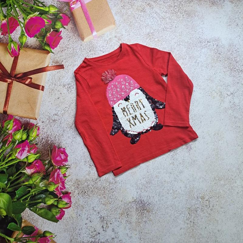 Червоний реглан з пінгвіном від F&F на 4-5 роки Шир 29 Довж 40 Рук 38 Стан ідеал