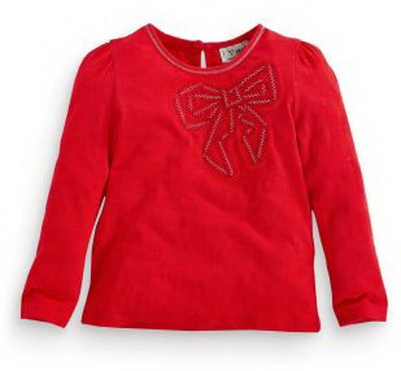 Новый яркий лонгслив Next с бантом, оригинал с официального сайта (Англия). Размер 3-4 года (на рост 104 см). Состав: 100% хлопок. Мягкая, очень приятная к телу ткань. Украшен роскошным бантом из шелковой ленты и сетки, отстроченным серебряным люрексом. Сделан в Индии. Качество отличное. Цена - 270 грн. Замеры: длина - 38 см, ширина под подмышками - 29 см, рукав от плеча - 40 см.