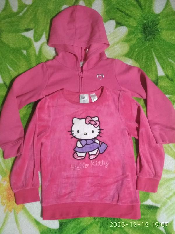 Кофтинки для дому. Розовая Hello Kitty велюровая в очень красивом состоянии. Без дефектов. Розовая с капюшоном – состояние хорошее, но имеет несколько мелких пятен как от фломастера (Показала на фото). Цена за 2 шт. - 55 грн.