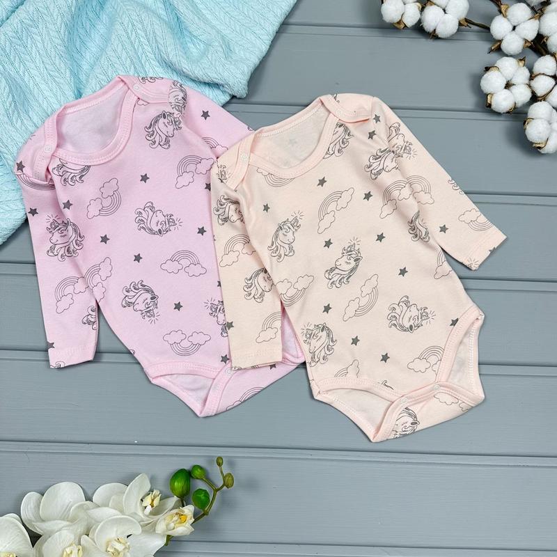 🦋Боді Єдиноріжка рожевий/персиковий з довгим рукавом. Тканина 100% бавовна. Виробник Туреччина. 📐Заміри: 56 - довж. 33/рукав.17 62 - довж. 35/рукав.19 68 - довж. 36/рукав.20 74 - довж. 37/рукав.21 80 - довж. 38/ рукав 22 86 - довж. 40/ рукав 25 92 - довж. 42/ рукав 25 98 - довж. 46/ рукав 27