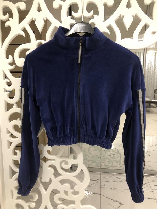 Стильная спортивная кофта для девочки. Дуже м"якесенька,велюрова. Нова,не носили. Звездная бирка. Опущенные плечики. Размер по набору -36р.( 134-146 рост) Длина рукава от шеи - 63 см Полуобхват груди - 40 см Длина по спине - 38см