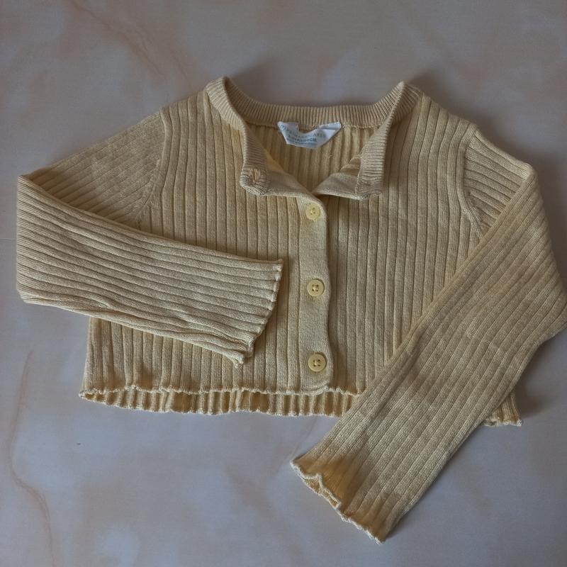Дуже ніжне болеро в рубчик з класивими рукавами чудово доповнить образ красуні. Склад: 77% віскоза Бренд: Primark Розмір: 2-3 р, 98 Колір: світло жовтий не яскравий, нюдовий Заміри: Рукав-34 Довжина від плеча- 21 Ширина під руками - 30