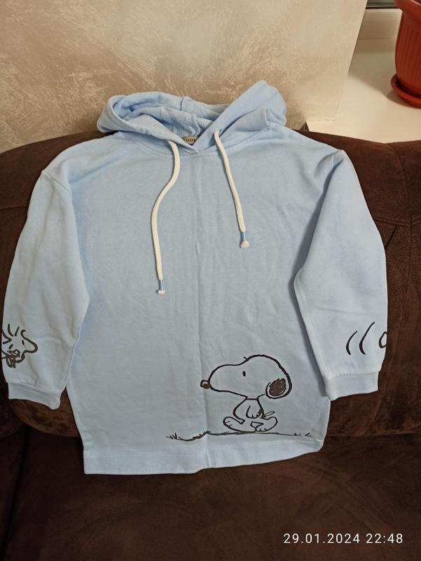 Кофта для дівчинки тепла ніжно - блакитного кольору з принтом спереду і на рукавах.