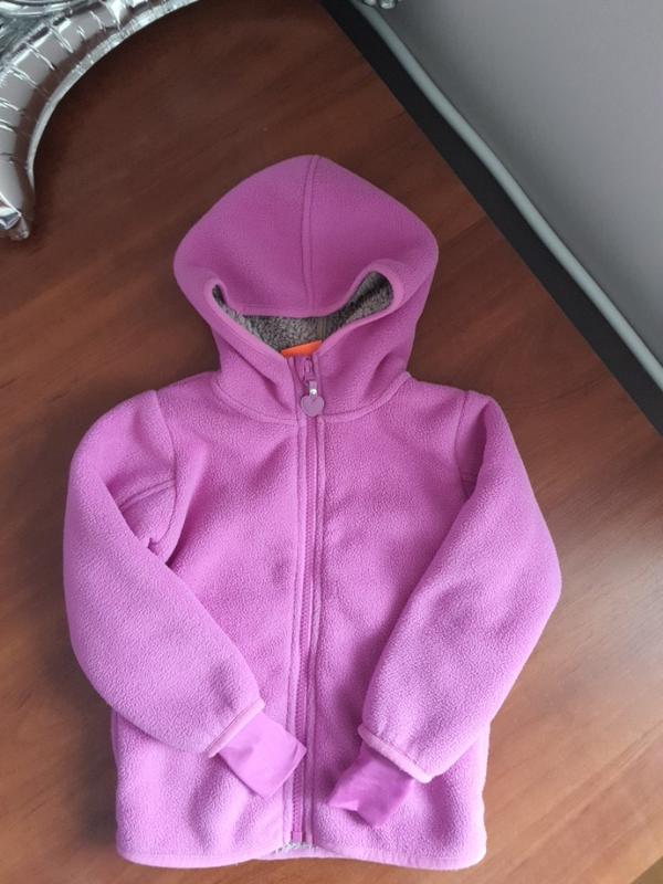 Кофта теплая флисовая фирмы cool club, внутри утеплена искусственным мехом, на девочку 98 см в красивом состоянии. На рукавах есть манжет для пальчиков.Колир фуксия, очень красивый.