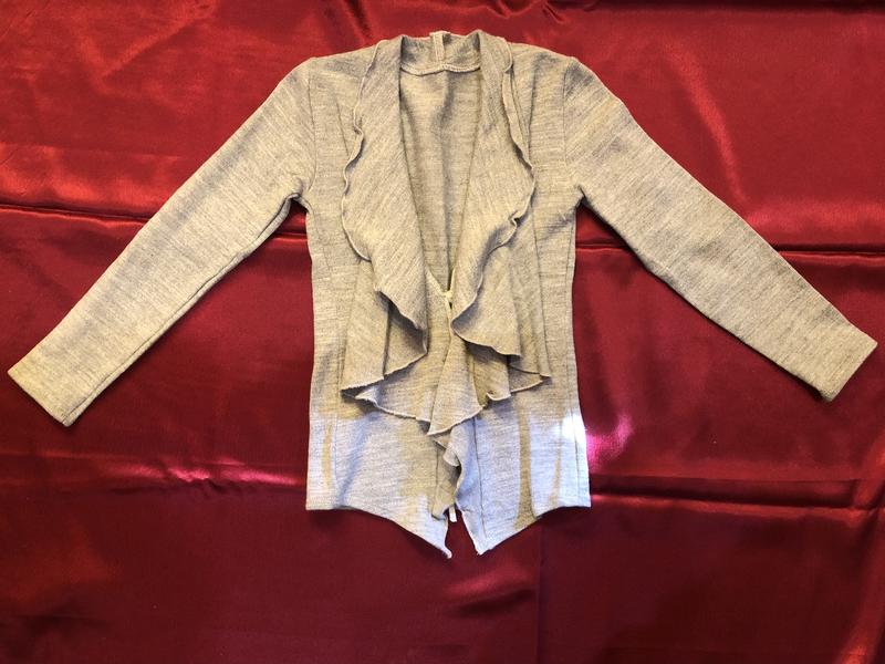 Кофта на дівчинку З вільними безформними відворотами На одній завʼязці під груддю Дуже добре тягнеться В наявності 2 шт різного розміру Заміри: довжина 43/47 см півобхват по груді 31/35 см довжина рукава 40/47 см плече 7/7 см Тканина: трикотаж Колір: сірий (меланж)
