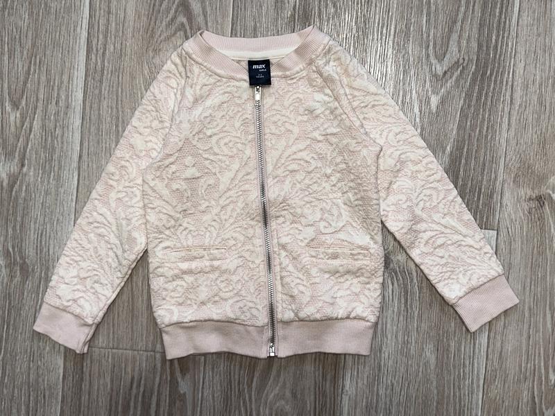 трикотажная кофта по типу бомбера, состояние отличнейшее 2-3 года длина 38. ПОГ 29. рукав от шеи 41.