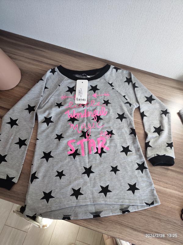 ТМ MEVIS - Україна, м.Хмельницький. Спинка довша за перед. Розмір 134: ПОГ 36см Плечі 29см Довжина 53-56см Рукав 3/4 від шиї 47см.