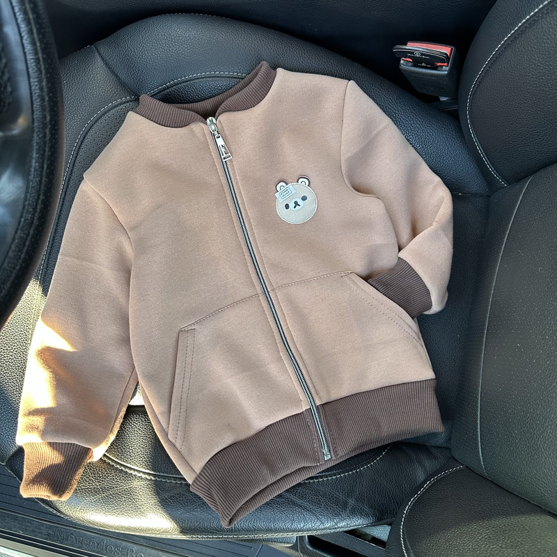 Теплый и стильный бомбер – просто идеален для осени! Ткань- трехнитка на флисе. Застегивается на молнию, манжеты, горловину и снизу- резинка рубчик трикотаж. Размеры: 56 (92-98) – рукав 30 длина 38 полуобхват 31 60 (98-104) – рукав 33 длина 41 полуобхват 33 64 (110-116) – рукав 38 длина 44 полуобхват 36 68 (116-122) - рукав 42 длина 46 полуобхват 37 72 (122-128) – рукав 47 длина 49 полуобхват 38