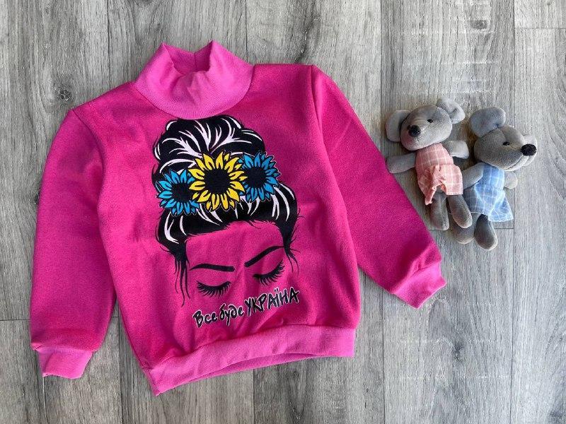 Виробник: Інший виробник Тип одягу: Толстовки Кілька примірників у наявності Теплий зимовий реглан на дівчинку від 2 до 5 років з написом "Все буде Україна". Колір – малиновий. Розміри у наявності - 92, 98, 104, 110.