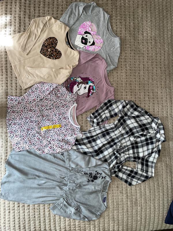 Нові речі та б/у На всіх речах разом зроблю скидку!!! Штани/юбка 800 Реглани/плаття 800 Футболки 2 шт 110-160, сукня холодне серце 200