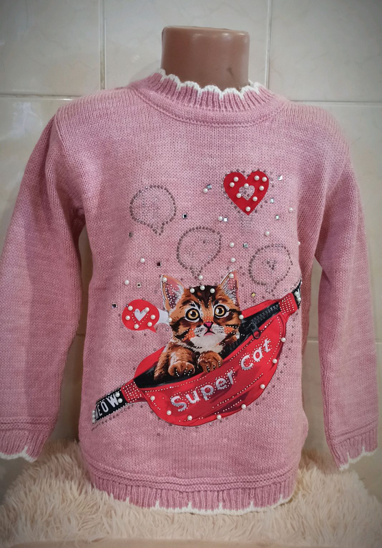 Виробник: Інший виробник Тип одягу: Светри Светр для дівчинки. Якість Відмінна 👍 Країна-виробник: Туреччина Склад 95% акрил 5% еластан. Дуже стильний красивий светр для дівчаток з модним принтом і стразами. . Розміри в наявності: 4-5 років (104-110), 6-7 років(116-122) 🛑При замовленні товару обов'язково вказуйте потрібний розмір!🛑