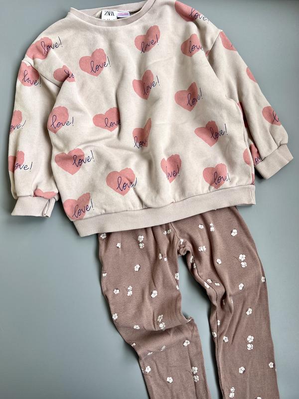 Збірний набір від бренду Zara ▪️розмір 4-5 років на зріст 104-110см. Довжина кофти 45см. Рукав від горловини 43см. Легінси 56 ▪️стан 4/5 (легінси ідеальні, на кофтинці пляма) 🏷️220грн
