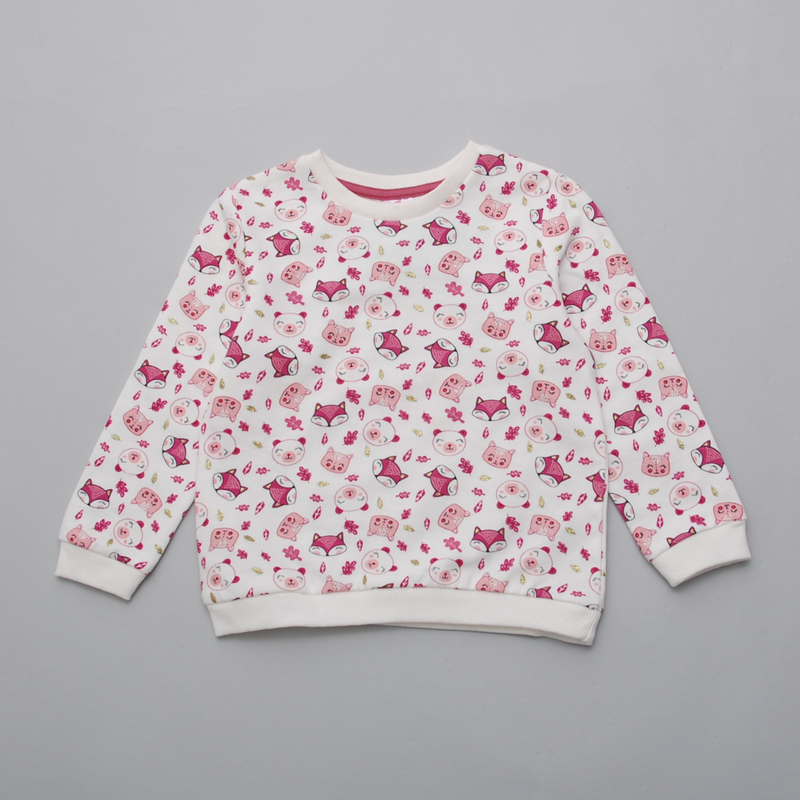 Тип одягу: Кофти Лонгслив для дівчинки білий з принтом лісові звірі Матеріал бавовна