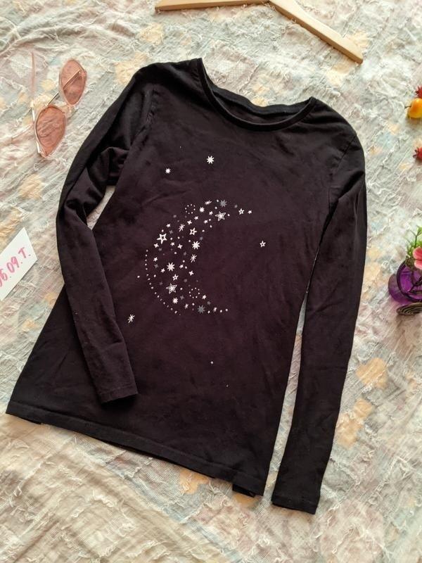 George Реглан, лонгслів з останньої колекції. Блискучий місяць та зірки. натуральний склад 100% cotton. стан ідеальний. по бірці 11-12 років колір чорний насичений