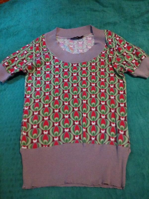 Длина по спинке- 57 см,плечи- 34 см,рукав от плеча - 19 см, пог- 40 см, по низу-32 см, тянется.