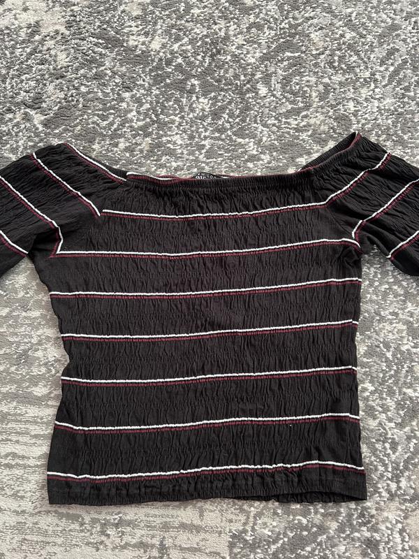 Стрейчова, рукав 3/4, можна носити приспущену з плечей. Приємна до шкіри,