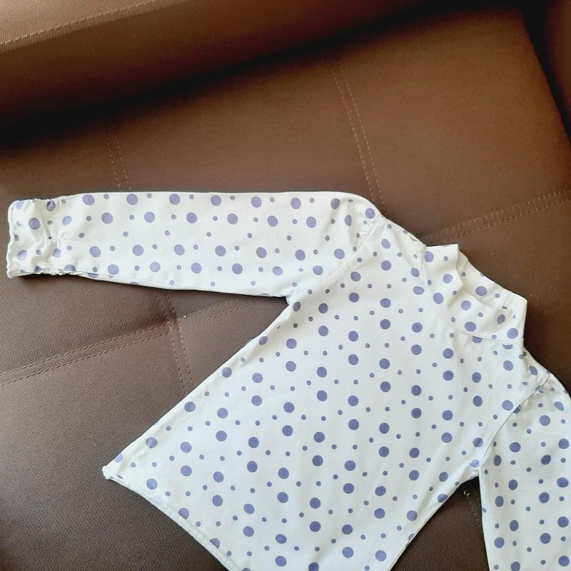 На 4-5 р, длина 41 см, обхват под руками 61 см, длина рукава от плеча 38 см