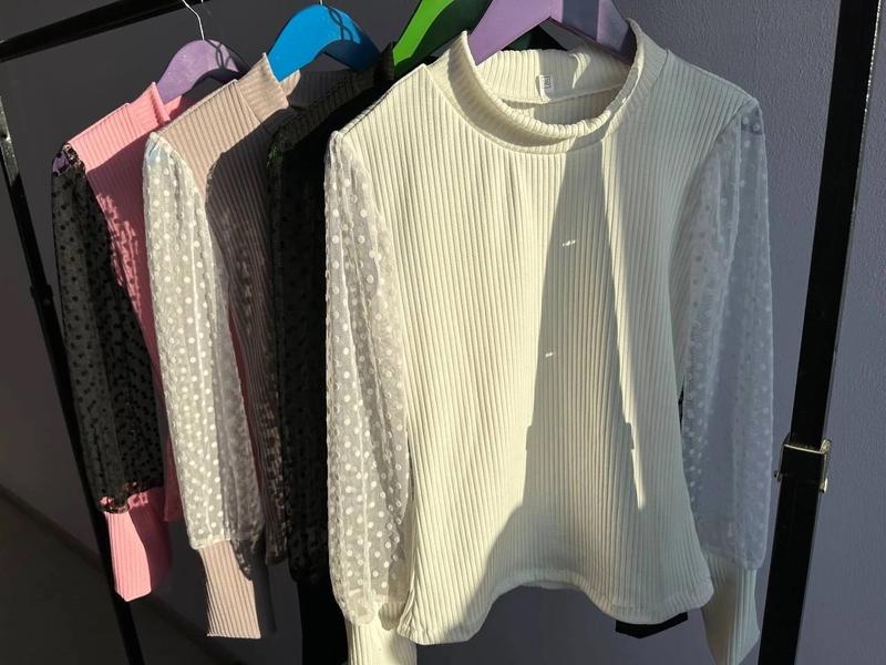 110-134р- 410 грн 140-164р-450 грн Дуже гарні гольфи з об'ємним рукавчиком із сітки. тканина рубчик-мустанг . кольори: чорний, рожевий, білий,крем Замеры: +- 1-2 см р.110-длина 39 см/ ПОГ 26 см/ рукав от плеча 37 см- р.116-длина 40 см/ ПОГ 26 см/ рукав от плеча 40 см- р.122-длина 42 см/ ПОГ 27 см/ рукав от плеча 42 см- р.128-длина 44 см/ ПОГ 29 см/ рукав от плеча 45 см- р.134-длина 46 см/ ПОГ 29 см/ рукав от плеча 45 см- р.140-длина 48 см/ ПОГ 32 см/ рукав от плеча 50 см- р.146-длина 50 см/ ПОГ 33 см/ рукав от плеча 52 см- р.152-длина 52 см/ ПОГ 35 см/ рукав от плеча 55 см- р.158-длина 54 см/ ПОГ 36 см/ рукав от плеча 58 см- р.164-длина 56 см/ ПОГ 38 см/ рукав от плеча 59 см-